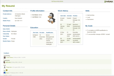 Mahara is an open source e-portfolio system with a flexible display framework. Users can create and display portfolios of their work, create a profile page, fill out their resume, create a blog, create and join groups, and connect with other users. Read more about Mahara...